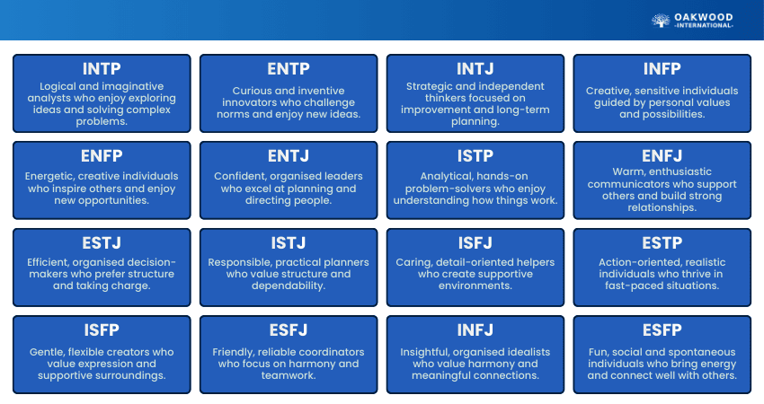 Each of the 16 Personality types has natural preferences that fit certain work environments. Intuitive (N) types excel in big-picture roles, while Sensing (S) types prefer detail-focused tasks. Thinking (T) types enjoy analytical work, whereas Feeling (F) types thrive in empathetic, people-centred roles.