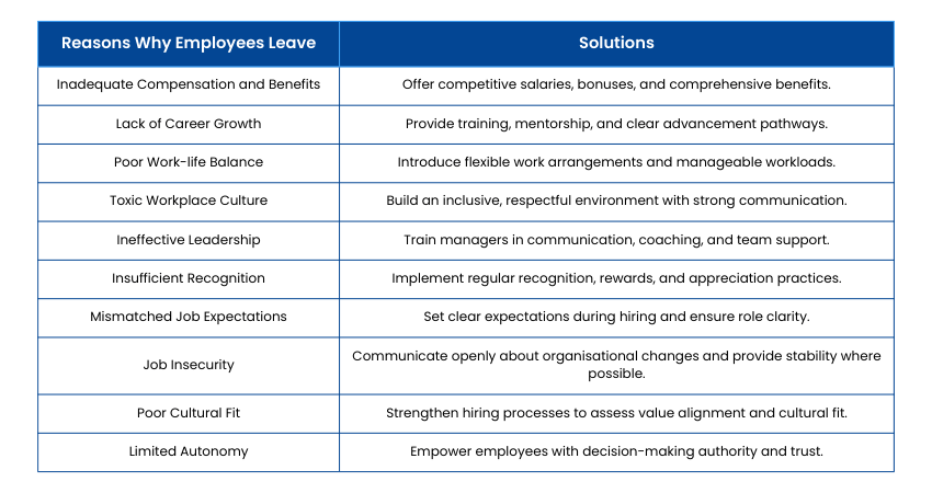 High employee turnover can significantly impact an organisation's stability, productivity, and financial health. Understanding the root causes of why employees leave is essential for implementing effective retention strategies. Below are some of the most common causes of high employee turnover:
