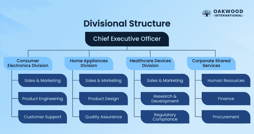 The organisation is segmented into autonomous divisions based on products, markets, or geographic regions. Each division works as a self-contained unit with dedicated resources and decision-making power.