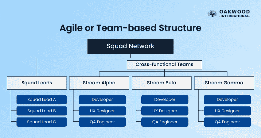 This contemporary structure emphasises dynamic, cross-functional teams formed to deliver products, services, or initiatives with a high degree of autonomy. Teams rapidly adapt to evolving requirements through iterative work cycles.
