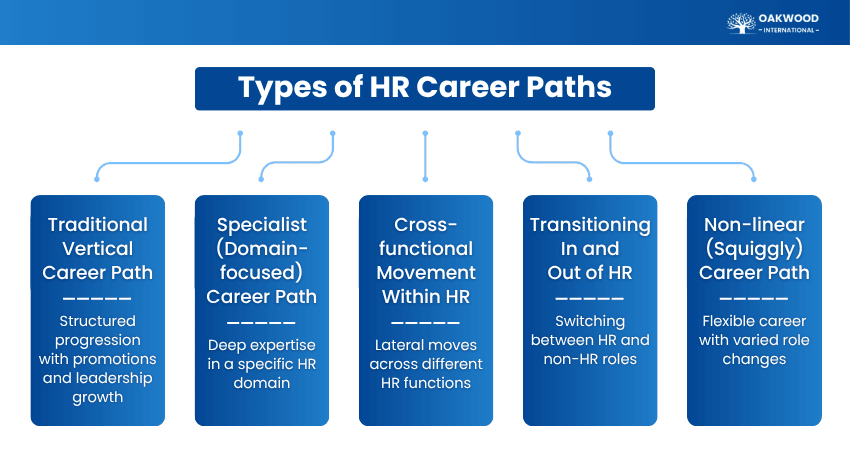 The HR Career Path offers multiple routes for growth based on skills and interests. It is flexible, with professionals entering from different backgrounds. These paths can be understood through the directions HR professionals take: