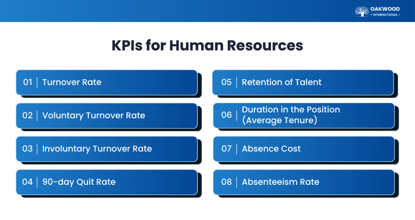 4) Monitoring Engagement and Retention: Indicators like engagement scores and turnover rates highlight employee morale and satisfaction, which affect performance and retention.