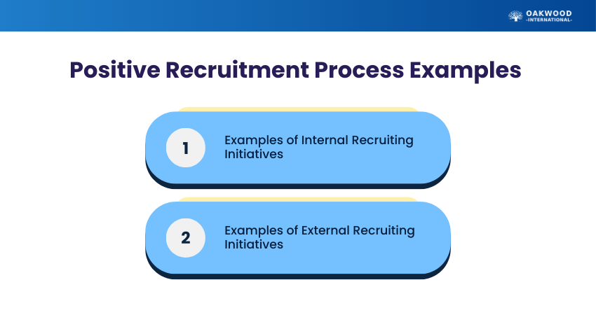 Example: A retail company might attend college career fairs to recruit part-time workers while also encouraging current employees to refer friends for open positions.